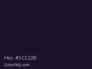 Hex #1c122b Color is a very dark violet color and the nearest color is Mirage #161928. Hex code #1c122b and RGB value is rgb(28,18,43). In RGB color space, this color is composed of 11% red, 7% green, 17% blue, In CMYK color space, this color is composed of 35% cyan, 58% magenta, 0% yellow , 83% black , In HSL color space, this color has a hue angle of 264° , 41% saturation and 12% lightness.