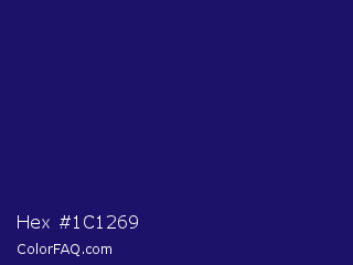 Hex #1c1269 Color is a dark indigo color and the nearest color is Lucky Point #1a1a68. Hex code #1c1269 and RGB value is rgb(28,18,105). In RGB color space, this color is composed of 11% red, 7% green, 41% blue, In CMYK color space, this color is composed of 73% cyan, 83% magenta, 0% yellow , 59% black , In HSL color space, this color has a hue angle of 247° , 71% saturation and 24% lightness.