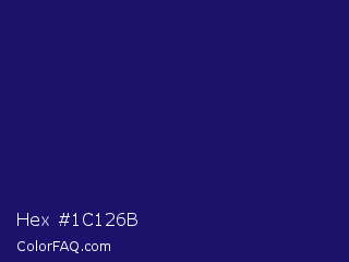 Hex #1c126b Color is a dark indigo color and the nearest color is Lucky Point #1a1a68. Hex code #1c126b and RGB value is rgb(28,18,107). In RGB color space, this color is composed of 11% red, 7% green, 42% blue, In CMYK color space, this color is composed of 74% cyan, 83% magenta, 0% yellow , 58% black , In HSL color space, this color has a hue angle of 247° , 71% saturation and 25% lightness.