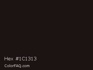 Hex #1c1313 Color is a almost black red color and the nearest color is Licorice #1a1110. Hex code #1c1313 and RGB value is rgb(28,19,19). In RGB color space, this color is composed of 11% red, 7% green, 7% blue, In CMYK color space, this color is composed of 0% cyan, 32% magenta, 32% yellow , 89% black , In HSL color space, this color has a hue angle of 0° , 19% saturation and 9% lightness.
