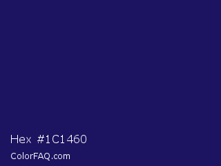 Hex #1c1460 Color is a dark indigo color and the nearest color is Lucky Point #1a1a68. Hex code #1c1460 and RGB value is rgb(28,20,96). In RGB color space, this color is composed of 11% red, 8% green, 38% blue, In CMYK color space, this color is composed of 71% cyan, 79% magenta, 0% yellow , 62% black , In HSL color space, this color has a hue angle of 246° , 66% saturation and 23% lightness.