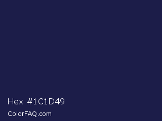 Hex #1c1d49 Color is a very dark blue color and the nearest color is Bunting #151f4c. Hex code #1c1d49 and RGB value is rgb(28,29,73). In RGB color space, this color is composed of 11% red, 11% green, 29% blue, In CMYK color space, this color is composed of 62% cyan, 60% magenta, 0% yellow , 71% black , In HSL color space, this color has a hue angle of 239° , 45% saturation and 20% lightness.