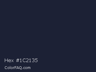 Hex #1c2135 Color is a very dark blue color and the nearest color is Steel Gray #262335. Hex code #1c2135 and RGB value is rgb(28,33,53). In RGB color space, this color is composed of 11% red, 13% green, 21% blue, In CMYK color space, this color is composed of 47% cyan, 38% magenta, 0% yellow , 79% black , In HSL color space, this color has a hue angle of 228° , 31% saturation and 16% lightness.