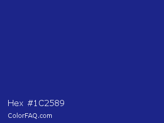 Hex #1c2589 Color is a normal blue color and the nearest color is Jacksons Purple #20208d. Hex code #1c2589 and RGB value is rgb(28,37,137). In RGB color space, this color is composed of 11% red, 15% green, 54% blue, In CMYK color space, this color is composed of 80% cyan, 73% magenta, 0% yellow , 46% black , In HSL color space, this color has a hue angle of 235° , 66% saturation and 32% lightness.