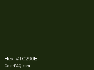 Hex #1c290e Color is a very dark green color and the nearest color is Seaweed #1b2f11. Hex code #1c290e and RGB value is rgb(28,41,14). In RGB color space, this color is composed of 11% red, 16% green, 5% blue, In CMYK color space, this color is composed of 32% cyan, 0% magenta, 66% yellow , 84% black , In HSL color space, this color has a hue angle of 89° , 49% saturation and 11% lightness.