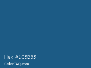 Hex #1c5b85 Color is a normal blue color and the nearest color is Blumine #18587a. Hex code #1c5b85 and RGB value is rgb(28,91,133). In RGB color space, this color is composed of 11% red, 36% green, 52% blue, In CMYK color space, this color is composed of 79% cyan, 32% magenta, 0% yellow , 48% black , In HSL color space, this color has a hue angle of 204° , 65% saturation and 32% lightness.
