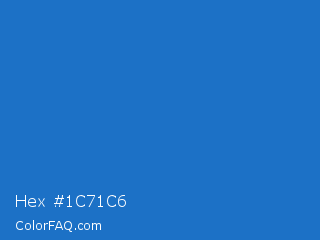 Hex #1c71c6 Color is a normal blue color and the nearest color is Bright Navy Blue #1974d2. Hex code #1c71c6 and RGB value is rgb(28,113,198). In RGB color space, this color is composed of 11% red, 44% green, 78% blue, In CMYK color space, this color is composed of 86% cyan, 43% magenta, 0% yellow , 22% black , In HSL color space, this color has a hue angle of 210° , 75% saturation and 44% lightness.