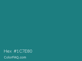 Hex #1c7e80 Color is a normal cyan color and the nearest color is Elm #1c7c7d. Hex code #1c7e80 and RGB value is rgb(28,126,128). In RGB color space, this color is composed of 11% red, 49% green, 50% blue, In CMYK color space, this color is composed of 78% cyan, 2% magenta, 0% yellow , 50% black , In HSL color space, this color has a hue angle of 181° , 64% saturation and 31% lightness.