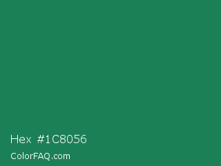 Hex #1c8056 Color is a normal green color and the nearest color is Eucalyptus #278a5b. Hex code #1c8056 and RGB value is rgb(28,128,86). In RGB color space, this color is composed of 11% red, 50% green, 34% blue, In CMYK color space, this color is composed of 78% cyan, 0% magenta, 33% yellow , 50% black , In HSL color space, this color has a hue angle of 155° , 64% saturation and 31% lightness.