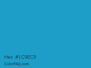 Hex #1c9ec9 Color is a normal blue color and the nearest color is Pacific Blue #1ca9c9. Hex code #1c9ec9 and RGB value is rgb(28,158,201). In RGB color space, this color is composed of 11% red, 62% green, 79% blue, In CMYK color space, this color is composed of 86% cyan, 21% magenta, 0% yellow , 21% black , In HSL color space, this color has a hue angle of 195° , 76% saturation and 45% lightness.