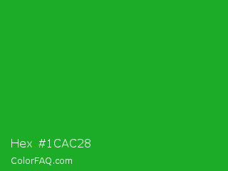 Hex #1cac28 Color is a normal green color and the nearest color is Wageningen Green #34b233. Hex code #1cac28 and RGB value is rgb(28,172,40). In RGB color space, this color is composed of 11% red, 67% green, 16% blue, In CMYK color space, this color is composed of 84% cyan, 0% magenta, 77% yellow , 33% black , In HSL color space, this color has a hue angle of 125° , 72% saturation and 39% lightness.