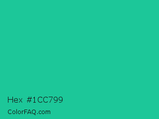 Hex #1cc799 Color is a normal cyan color and the nearest color is Shamrock #33cc99. Hex code #1cc799 and RGB value is rgb(28,199,153). In RGB color space, this color is composed of 11% red, 78% green, 60% blue, In CMYK color space, this color is composed of 86% cyan, 0% magenta, 23% yellow , 22% black , In HSL color space, this color has a hue angle of 164° , 75% saturation and 45% lightness.