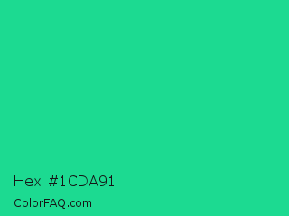 Hex #1cda91 Color is a normal green color and the nearest color is Shamrock #33cc99. Hex code #1cda91 and RGB value is rgb(28,218,145). In RGB color space, this color is composed of 11% red, 85% green, 57% blue, In CMYK color space, this color is composed of 87% cyan, 0% magenta, 33% yellow , 15% black , In HSL color space, this color has a hue angle of 157° , 77% saturation and 48% lightness.