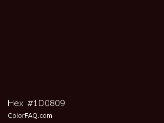 Hex #1d0809 Color is a almost black red color and the nearest color is Creole #1e0f04. Hex code #1d0809 and RGB value is rgb(29,8,9). In RGB color space, this color is composed of 11% red, 3% green, 4% blue, In CMYK color space, this color is composed of 0% cyan, 72% magenta, 69% yellow , 89% black , In HSL color space, this color has a hue angle of 357° , 57% saturation and 7% lightness.