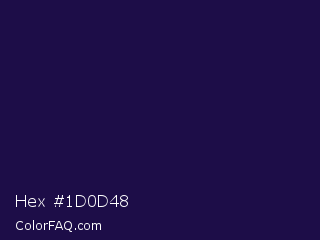 Hex #1d0d48 Color is a very dark indigo color and the nearest color is Violet #240a40. Hex code #1d0d48 and RGB value is rgb(29,13,72). In RGB color space, this color is composed of 11% red, 5% green, 28% blue, In CMYK color space, this color is composed of 60% cyan, 82% magenta, 0% yellow , 72% black , In HSL color space, this color has a hue angle of 256° , 69% saturation and 17% lightness.