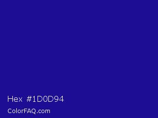 Hex #1d0d94 Color is a normal indigo color and the nearest color is Ultramarine #120a8f. Hex code #1d0d94 and RGB value is rgb(29,13,148). In RGB color space, this color is composed of 11% red, 5% green, 58% blue, In CMYK color space, this color is composed of 80% cyan, 91% magenta, 0% yellow , 42% black , In HSL color space, this color has a hue angle of 247° , 84% saturation and 32% lightness.