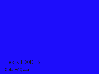 Hex #1d0dfb Color is a normal indigo color and the nearest color is Bluebonnet #1c1cf0. Hex code #1d0dfb and RGB value is rgb(29,13,251). In RGB color space, this color is composed of 11% red, 5% green, 98% blue, In CMYK color space, this color is composed of 88% cyan, 95% magenta, 0% yellow , 2% black , In HSL color space, this color has a hue angle of 244° , 97% saturation and 52% lightness.