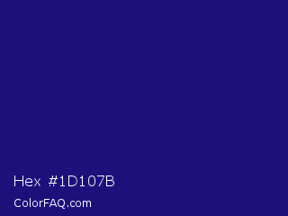 Hex #1d107b Color is a dark indigo color and the nearest color is Deep Koamaru #1b127b. Hex code #1d107b and RGB value is rgb(29,16,123). In RGB color space, this color is composed of 11% red, 6% green, 48% blue, In CMYK color space, this color is composed of 76% cyan, 87% magenta, 0% yellow , 52% black , In HSL color space, this color has a hue angle of 247° , 77% saturation and 27% lightness.