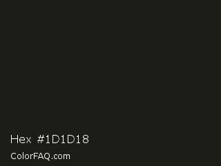 Hex #1d1d18 Color is a very dark yellow color and the nearest color is Eerie Black #1b1b1b. Hex code #1d1d18 and RGB value is rgb(29,29,24). In RGB color space, this color is composed of 11% red, 11% green, 9% blue, In CMYK color space, this color is composed of 0% cyan, 0% magenta, 17% yellow , 89% black , In HSL color space, this color has a hue angle of 60° , 9% saturation and 10% lightness.