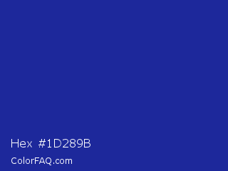 Hex #1d289b Color is a normal blue color and the nearest color is Torea Bay #0f2d9e. Hex code #1d289b and RGB value is rgb(29,40,155). In RGB color space, this color is composed of 11% red, 16% green, 61% blue, In CMYK color space, this color is composed of 81% cyan, 74% magenta, 0% yellow , 39% black , In HSL color space, this color has a hue angle of 235° , 68% saturation and 36% lightness.