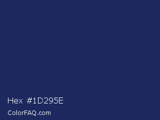 Hex #1d295e Color is a dark blue color and the nearest color is Biscay #1b3162. Hex code #1d295e and RGB value is rgb(29,41,94). In RGB color space, this color is composed of 11% red, 16% green, 37% blue, In CMYK color space, this color is composed of 69% cyan, 56% magenta, 0% yellow , 63% black , In HSL color space, this color has a hue angle of 229° , 53% saturation and 24% lightness.