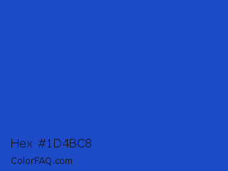 Hex #1d4bc8 Color is a normal blue color and the nearest color is New Car #214fc6. Hex code #1d4bc8 and RGB value is rgb(29,75,200). In RGB color space, this color is composed of 11% red, 29% green, 78% blue, In CMYK color space, this color is composed of 86% cyan, 63% magenta, 0% yellow , 22% black , In HSL color space, this color has a hue angle of 224° , 75% saturation and 45% lightness.