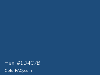 Hex #1d4c7b Color is a dark blue color and the nearest color is Chathams Blue #175579. Hex code #1d4c7b and RGB value is rgb(29,76,123). In RGB color space, this color is composed of 11% red, 30% green, 48% blue, In CMYK color space, this color is composed of 76% cyan, 38% magenta, 0% yellow , 52% black , In HSL color space, this color has a hue angle of 210° , 62% saturation and 30% lightness.