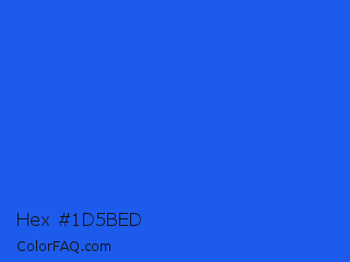 Hex #1d5bed Color is a normal blue color and the nearest color is Blue Crayola #1f75fe. Hex code #1d5bed and RGB value is rgb(29,91,237). In RGB color space, this color is composed of 11% red, 36% green, 93% blue, In CMYK color space, this color is composed of 88% cyan, 62% magenta, 0% yellow , 7% black , In HSL color space, this color has a hue angle of 222° , 85% saturation and 52% lightness.