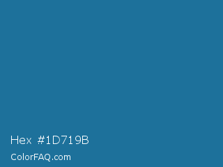 Hex #1d719b Color is a normal blue color and the nearest color is Matisse #1b659d. Hex code #1d719b and RGB value is rgb(29,113,155). In RGB color space, this color is composed of 11% red, 44% green, 61% blue, In CMYK color space, this color is composed of 81% cyan, 27% magenta, 0% yellow , 39% black , In HSL color space, this color has a hue angle of 200° , 68% saturation and 36% lightness.