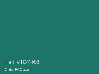 Hex #1d7468 Color is a dark cyan color and the nearest color is Genoa #15736b. Hex code #1d7468 and RGB value is rgb(29,116,104). In RGB color space, this color is composed of 11% red, 45% green, 41% blue, In CMYK color space, this color is composed of 75% cyan, 0% magenta, 10% yellow , 55% black , In HSL color space, this color has a hue angle of 172° , 60% saturation and 28% lightness.