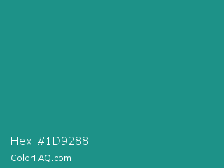 Hex #1d9288 Color is a normal cyan color and the nearest color is Lochinvar #2c8c84. Hex code #1d9288 and RGB value is rgb(29,146,136). In RGB color space, this color is composed of 11% red, 57% green, 53% blue, In CMYK color space, this color is composed of 80% cyan, 0% magenta, 7% yellow , 43% black , In HSL color space, this color has a hue angle of 175° , 67% saturation and 34% lightness.
