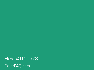 Hex #1d9d78 Color is a normal green color and the nearest color is Green Crayola #1cac78. Hex code #1d9d78 and RGB value is rgb(29,157,120). In RGB color space, this color is composed of 11% red, 62% green, 47% blue, In CMYK color space, this color is composed of 82% cyan, 0% magenta, 24% yellow , 38% black , In HSL color space, this color has a hue angle of 163° , 69% saturation and 36% lightness.