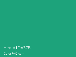 Hex #1da37b Color is a normal green color and the nearest color is Green Crayola #1cac78. Hex code #1da37b and RGB value is rgb(29,163,123). In RGB color space, this color is composed of 11% red, 64% green, 48% blue, In CMYK color space, this color is composed of 82% cyan, 0% magenta, 25% yellow , 36% black , In HSL color space, this color has a hue angle of 162° , 70% saturation and 38% lightness.