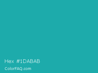 Hex #1dabab Color is a normal cyan color and the nearest color is Light Sea Green #20b2aa. Hex code #1dabab and RGB value is rgb(29,171,171). In RGB color space, this color is composed of 11% red, 67% green, 67% blue, In CMYK color space, this color is composed of 83% cyan, 0% magenta, 0% yellow , 33% black , In HSL color space, this color has a hue angle of 180° , 71% saturation and 39% lightness.