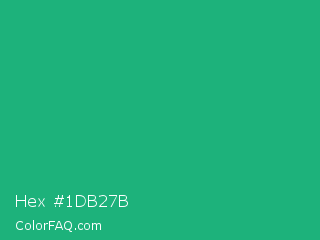 Hex #1db27b Color is a normal green color and the nearest color is Green Crayola #1cac78. Hex code #1db27b and RGB value is rgb(29,178,123). In RGB color space, this color is composed of 11% red, 70% green, 48% blue, In CMYK color space, this color is composed of 84% cyan, 0% magenta, 31% yellow , 30% black , In HSL color space, this color has a hue angle of 158° , 72% saturation and 41% lightness.