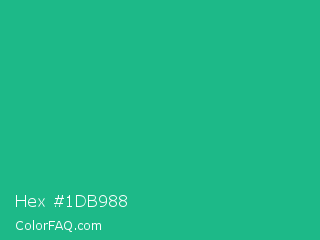 Hex #1db988 Color is a normal green color and the nearest color is Mountain Meadow Crayola #1ab385. Hex code #1db988 and RGB value is rgb(29,185,136). In RGB color space, this color is composed of 11% red, 73% green, 53% blue, In CMYK color space, this color is composed of 84% cyan, 0% magenta, 26% yellow , 27% black , In HSL color space, this color has a hue angle of 161° , 73% saturation and 42% lightness.