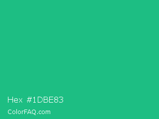 Hex #1dbe83 Color is a normal green color and the nearest color is Mountain Meadow Crayola #1ab385. Hex code #1dbe83 and RGB value is rgb(29,190,131). In RGB color space, this color is composed of 11% red, 75% green, 51% blue, In CMYK color space, this color is composed of 85% cyan, 0% magenta, 31% yellow , 25% black , In HSL color space, this color has a hue angle of 158° , 74% saturation and 43% lightness.