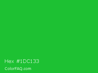 Hex #1dc133 Color is a normal green color and the nearest color is Lime Green #32cd32. Hex code #1dc133 and RGB value is rgb(29,193,51). In RGB color space, this color is composed of 11% red, 76% green, 20% blue, In CMYK color space, this color is composed of 85% cyan, 0% magenta, 74% yellow , 24% black , In HSL color space, this color has a hue angle of 128° , 74% saturation and 44% lightness.