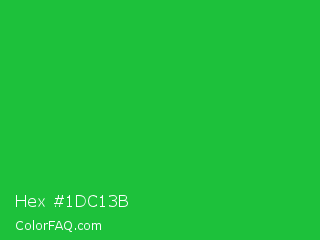 Hex #1dc13b Color is a normal green color and the nearest color is Lime Green #32cd32. Hex code #1dc13b and RGB value is rgb(29,193,59). In RGB color space, this color is composed of 11% red, 76% green, 23% blue, In CMYK color space, this color is composed of 85% cyan, 0% magenta, 69% yellow , 24% black , In HSL color space, this color has a hue angle of 131° , 74% saturation and 44% lightness.