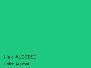 Hex #1dc880 Color is a normal green color and the nearest color is Mountain Meadow Crayola #1ab385. Hex code #1dc880 and RGB value is rgb(29,200,128). In RGB color space, this color is composed of 11% red, 78% green, 50% blue, In CMYK color space, this color is composed of 86% cyan, 0% magenta, 36% yellow , 22% black , In HSL color space, this color has a hue angle of 155° , 75% saturation and 45% lightness.