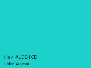 Hex #1dd1cb Color is a normal cyan color and the nearest color is Java #1fc2c2. Hex code #1dd1cb and RGB value is rgb(29,209,203). In RGB color space, this color is composed of 11% red, 82% green, 80% blue, In CMYK color space, this color is composed of 86% cyan, 0% magenta, 3% yellow , 18% black , In HSL color space, this color has a hue angle of 178° , 76% saturation and 47% lightness.
