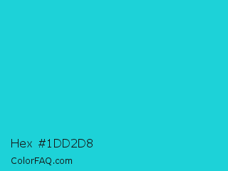 Hex #1dd2d8 Color is a normal cyan color and the nearest color is Turquoise PWG #30d5c8. Hex code #1dd2d8 and RGB value is rgb(29,210,216). In RGB color space, this color is composed of 11% red, 82% green, 85% blue, In CMYK color space, this color is composed of 87% cyan, 3% magenta, 0% yellow , 15% black , In HSL color space, this color has a hue angle of 182° , 76% saturation and 48% lightness.
