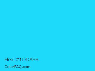 Hex #1ddafb Color is a normal cyan color and the nearest color is Loeen #15f2fd. Hex code #1ddafb and RGB value is rgb(29,218,251). In RGB color space, this color is composed of 11% red, 85% green, 98% blue, In CMYK color space, this color is composed of 88% cyan, 13% magenta, 0% yellow , 2% black , In HSL color space, this color has a hue angle of 189° , 97% saturation and 55% lightness.