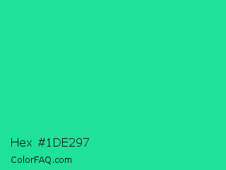 Hex #1de297 Color is a normal green color and the nearest color is Shamrock #33cc99. Hex code #1de297 and RGB value is rgb(29,226,151). In RGB color space, this color is composed of 11% red, 89% green, 59% blue, In CMYK color space, this color is composed of 87% cyan, 0% magenta, 33% yellow , 11% black , In HSL color space, this color has a hue angle of 157° , 77% saturation and 50% lightness.