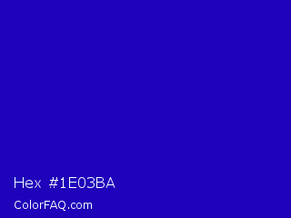 Hex #1e03ba Color is a normal indigo color and the nearest color is Interdimensional Blue #360ccc. Hex code #1e03ba and RGB value is rgb(30,3,186). In RGB color space, this color is composed of 12% red, 1% green, 73% blue, In CMYK color space, this color is composed of 84% cyan, 98% magenta, 0% yellow , 27% black , In HSL color space, this color has a hue angle of 249° , 97% saturation and 37% lightness.