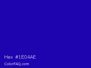 Hex #1e04ae Color is a normal indigo color and the nearest color is Ultramarine #120a8f. Hex code #1e04ae and RGB value is rgb(30,4,174). In RGB color space, this color is composed of 12% red, 2% green, 68% blue, In CMYK color space, this color is composed of 83% cyan, 98% magenta, 0% yellow , 32% black , In HSL color space, this color has a hue angle of 249° , 96% saturation and 35% lightness.