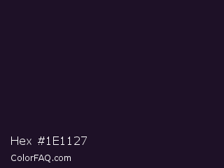 Hex #1e1127 Color is a very dark purple color and the nearest color is Mirage #161928. Hex code #1e1127 and RGB value is rgb(30,17,39). In RGB color space, this color is composed of 12% red, 7% green, 15% blue, In CMYK color space, this color is composed of 23% cyan, 56% magenta, 0% yellow , 85% black , In HSL color space, this color has a hue angle of 275° , 39% saturation and 11% lightness.