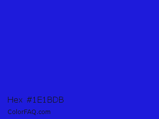 Hex #1e1bdb Color is a normal indigo color and the nearest color is Bluebonnet #1c1cf0. Hex code #1e1bdb and RGB value is rgb(30,27,219). In RGB color space, this color is composed of 12% red, 11% green, 86% blue, In CMYK color space, this color is composed of 86% cyan, 88% magenta, 0% yellow , 14% black , In HSL color space, this color has a hue angle of 241° , 78% saturation and 48% lightness.