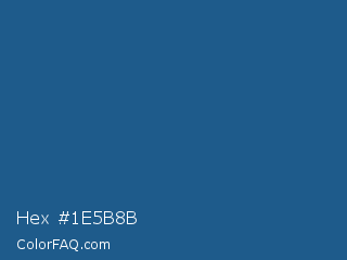 Hex #1e5b8b Color is a normal blue color and the nearest color is Blue Sapphire #126180. Hex code #1e5b8b and RGB value is rgb(30,91,139). In RGB color space, this color is composed of 12% red, 36% green, 55% blue, In CMYK color space, this color is composed of 78% cyan, 35% magenta, 0% yellow , 45% black , In HSL color space, this color has a hue angle of 206° , 64% saturation and 33% lightness.