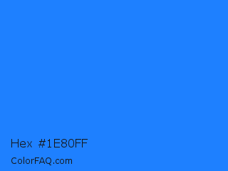 Hex #1e80ff Color is a normal blue color and the nearest color is Blue Crayola #1f75fe. Hex code #1e80ff and RGB value is rgb(30,128,255). In RGB color space, this color is composed of 12% red, 50% green, 100% blue, In CMYK color space, this color is composed of 88% cyan, 50% magenta, 0% yellow , 0% black , In HSL color space, this color has a hue angle of 214° , 100% saturation and 56% lightness.